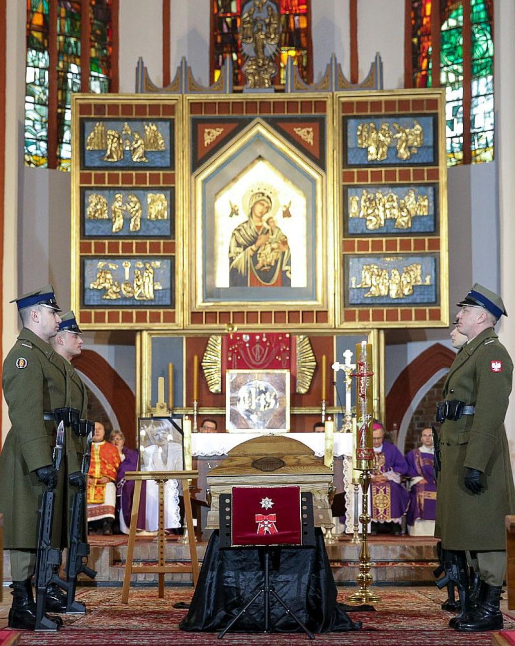W Kościele Mariackim w Słupsku została odprawiona w poniedziałek msza św. pogrzebowa, której przewodniczył biskup diecezji koszalińsko-kołobrzeskiej ks. Edward Dajczak. W uroczystościach, oprócz Prezydenta z Małżonką, uczestniczyli także marszałek Sejmu Marek Kuchciński, marszałek Senatu Stanisław Karczewski, a także wicemarszałkowie Sejmu Ryszard Terlecki i Beata Mazurek oraz prezes PiS Jarosław Kaczyński.