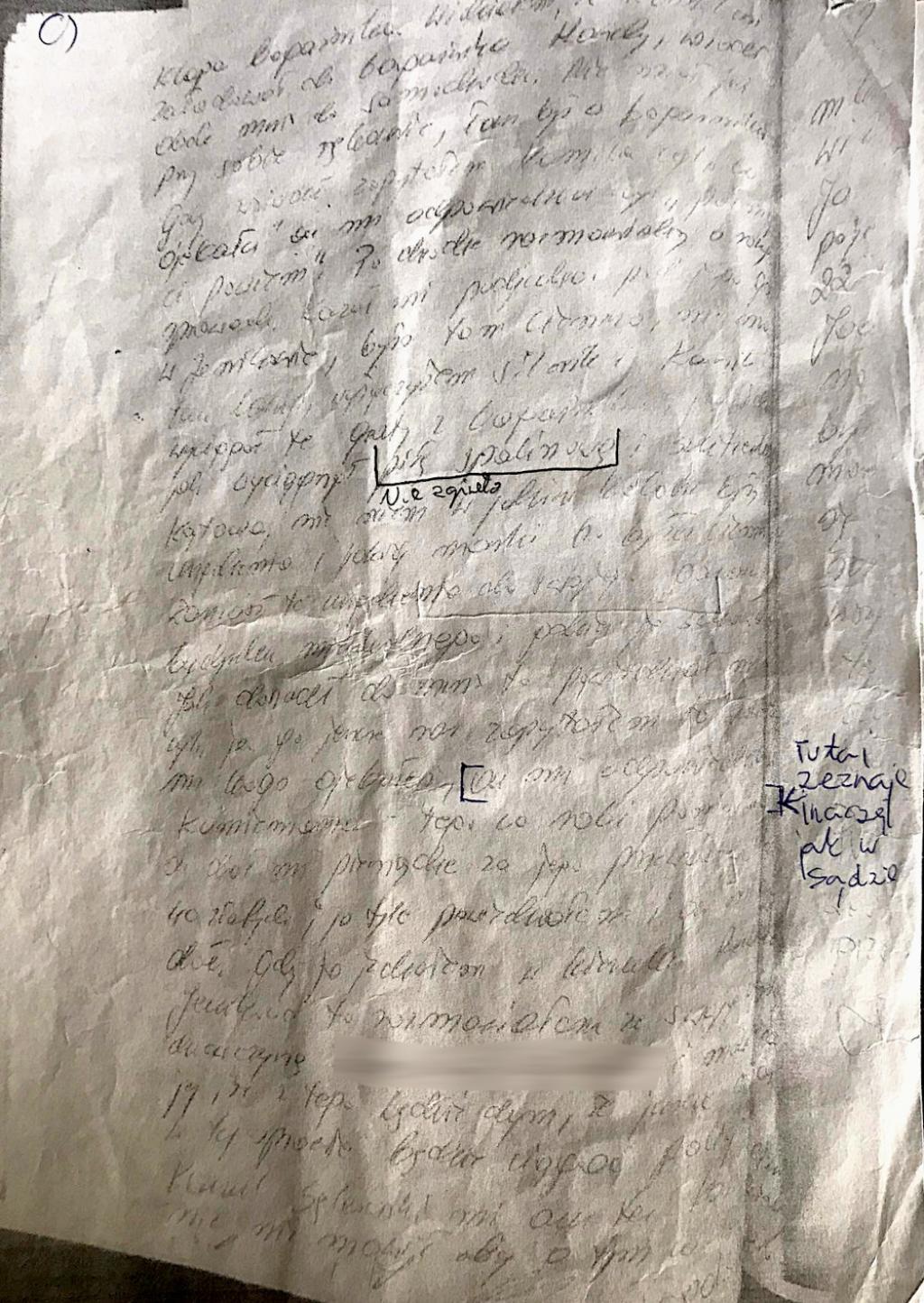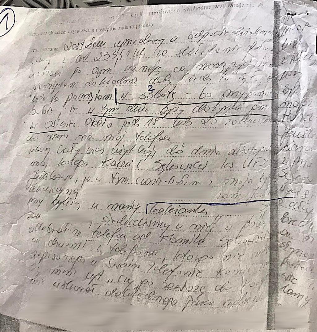 Czy Sąd Apelacyjny w Szczecinie dostrzegł tę różnicę? Możliwe że nie, bo zeznania sprzed siedmiu lat na policji były spisywane ręcznie i są trudne do rozczytania. Dlatego zamieszczone ich kopie razem z istotnymi fragmentami w tym zakresie.
