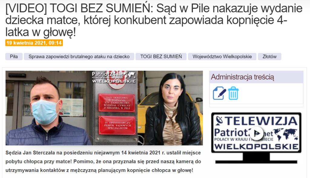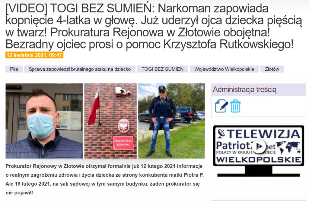 Tę szokującą sprawę opisywaliśmy wiosną 2021 r. Przypomnijmy, że konkubent matki tak znienawidził chłopca, że chciał mu „przyjebać z kopa w łeb”. Szokującą decyzję Sądu Okręgowego w Pile, który wówczas udawał że nie widzi zagrożenia zdrowia i życia dziecka, teraz zmienił sąd Apelacyjny w Poznaniu uznając racje Rutkowskiego!