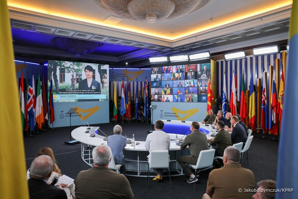 Prezydent nawiązał do spotkania forum Platformy Krymskiej, w którym udział wzięli poprzez Internet przywódcy wielu państw. Zaznaczył, że poszedł w świat jasny komunikat, że Krym jest ukraiński i jest dzisiaj okupowany przez Rosję.