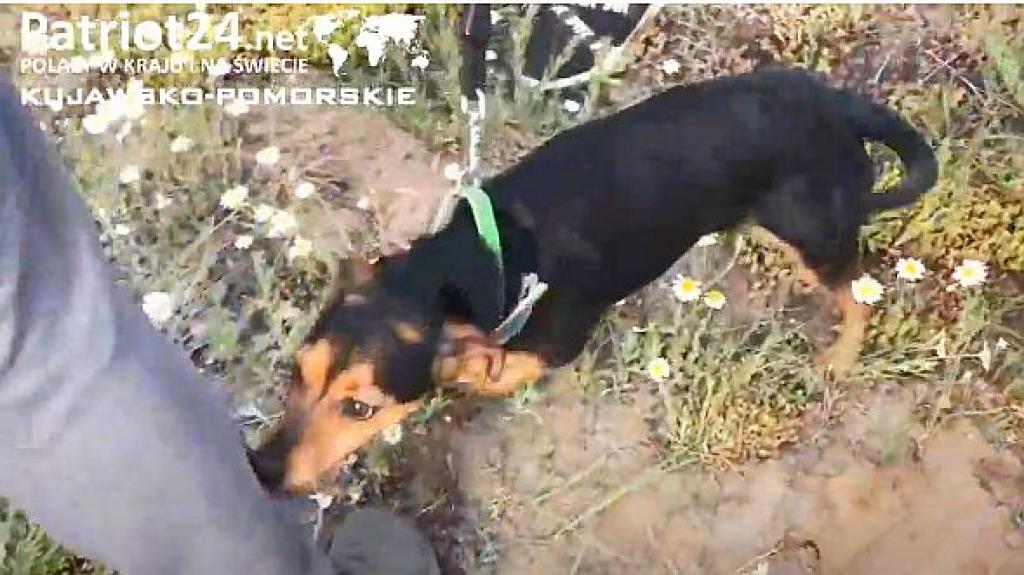 Po przewiezieniu go w okolice miejsca odnalezienia rzeczy Piotra, pies otrzymał próbki zapachowe zaginionego. Po początkowym neutralnym zachowaniu w nowych dla siebie warunkach przyrodniczych, po ok. pół godziny pies wykazał nadzwyczajną aktywność.